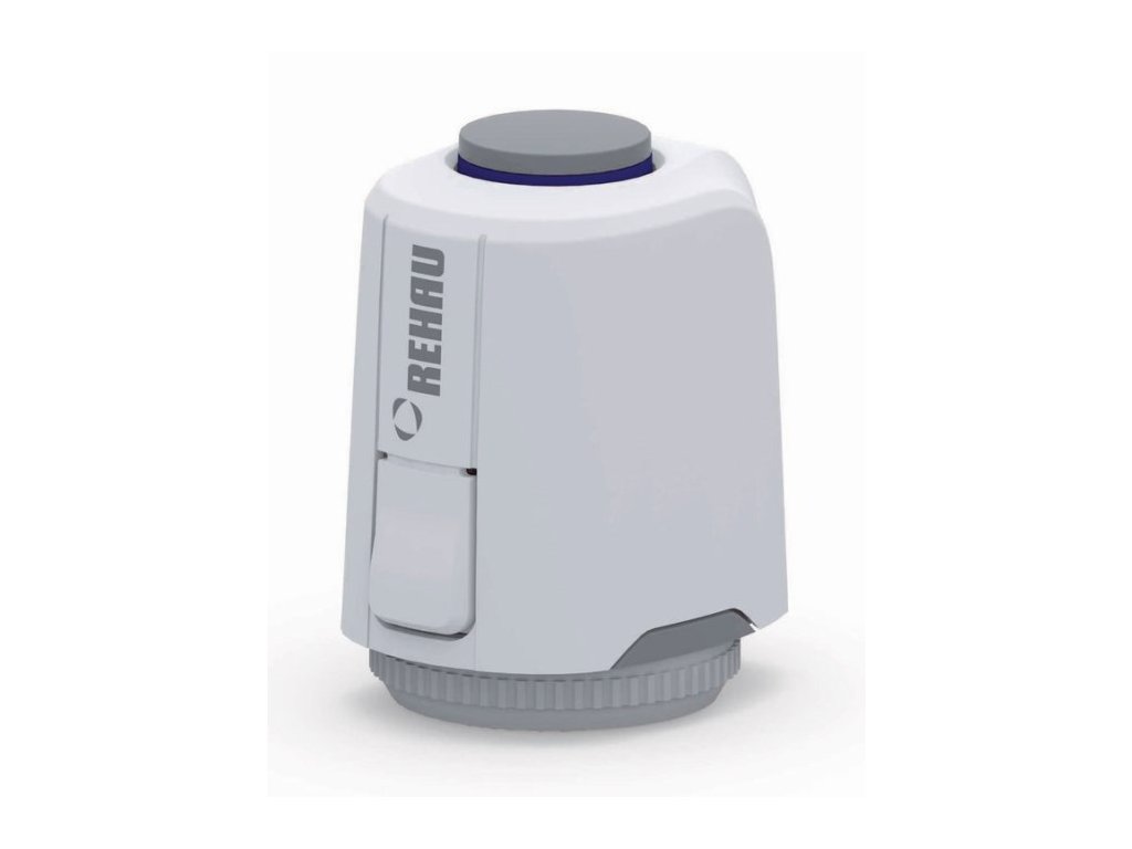Termický servopohon pro ovládání ventilů na vratném potrubí REHAU rozdělovače, bez napětí zavřeno. Ukazatel zdvihu s kontrolou úpravy na vrchní straně servopohonu. Jednoduchá montáž nasunutím na adaptér ventilu. Funkce prvního otevření pro provoz plošného vytápění během stavby (před montáží prostorových termostatů) Možnost použití na různé ventily pomocí adaptéru.